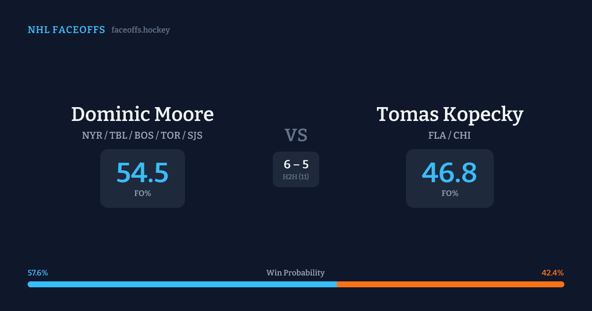 Dominic Moore vs Tomas Kopecky — Faceoff Head-to-Head