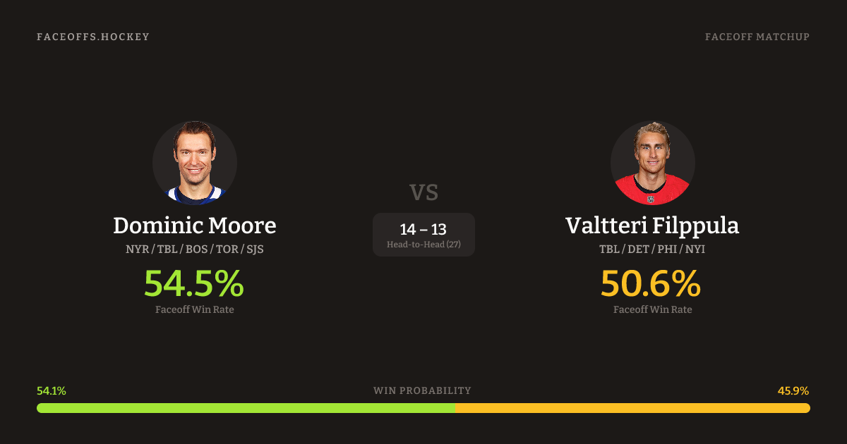 Moore 54.0% vs Filppula 52.1% (+2.3%)