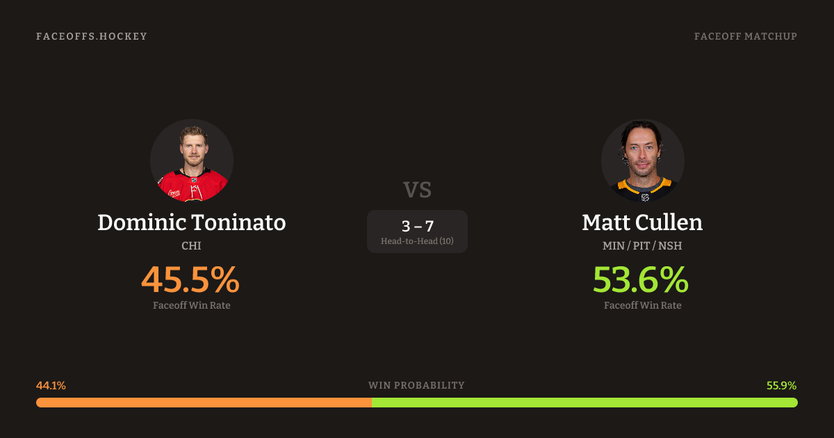 Dominic Toninato vs Matt Cullen — Faceoff Head-to-Head