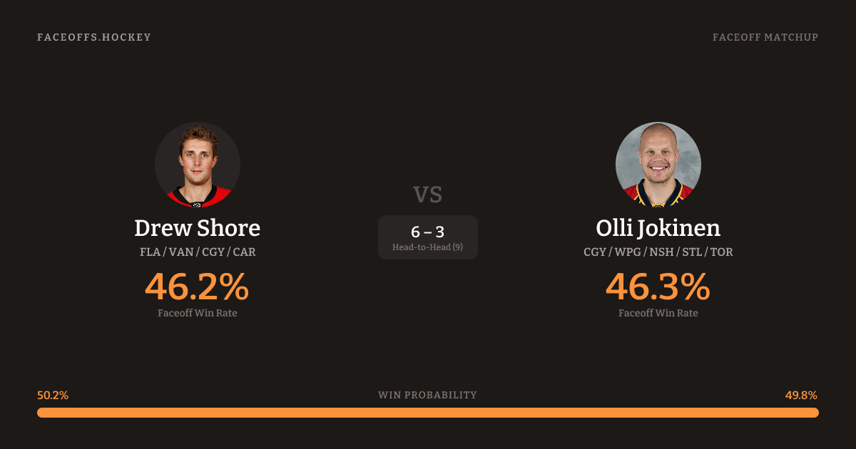 Drew Shore vs Olli Jokinen — Faceoff Head-to-Head
