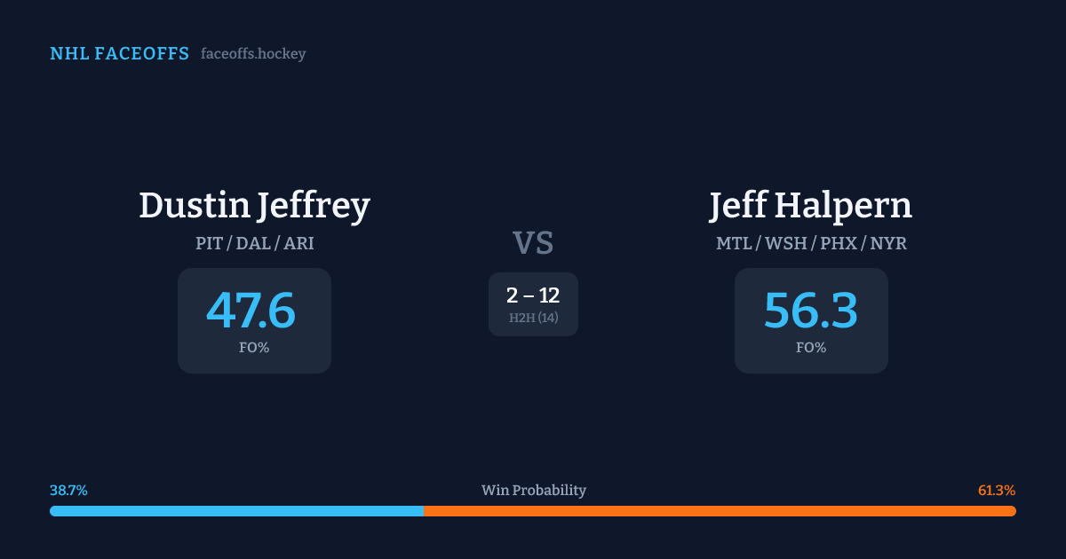 Dustin Jeffrey vs Jeff Halpern — Faceoff Head-to-Head