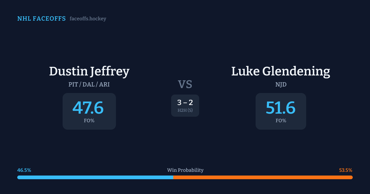Dustin Jeffrey vs Luke Glendening — Faceoff Head-to-Head