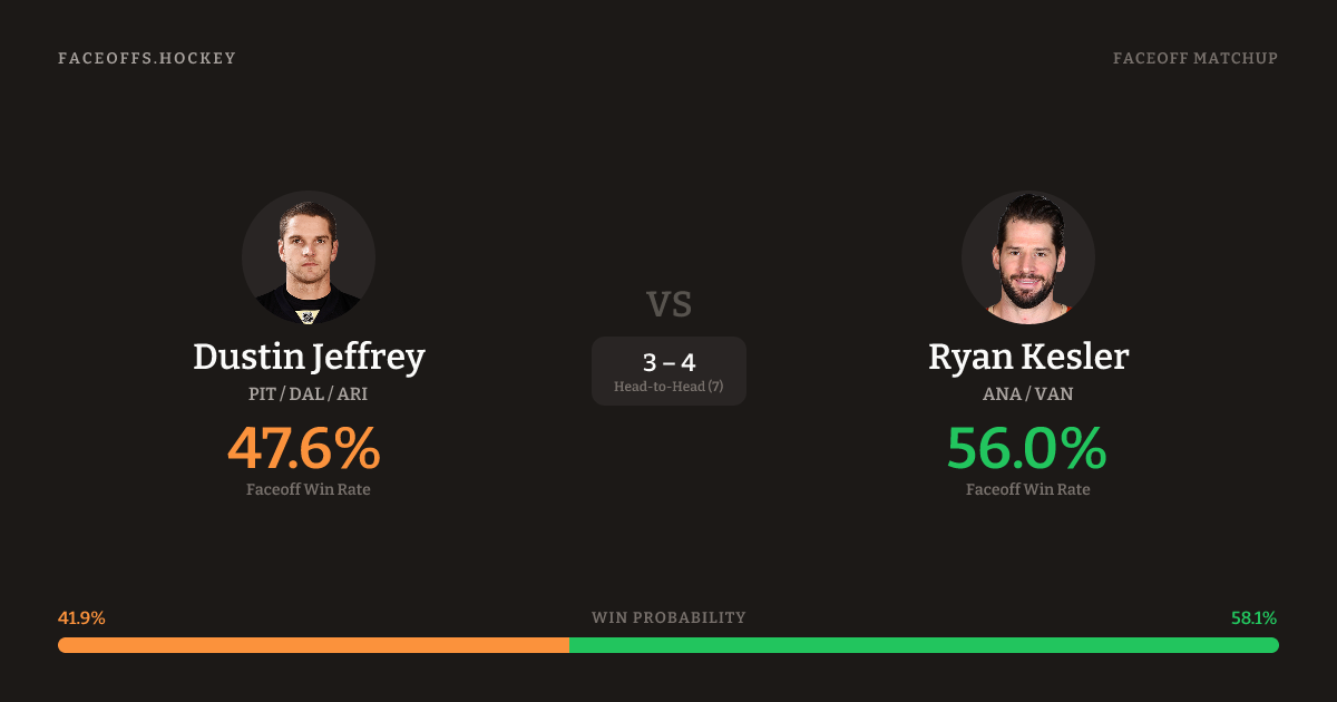 Dustin Jeffrey vs Ryan Kesler — Faceoff Head-to-Head