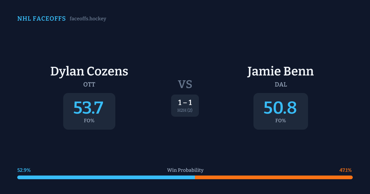 Dylan Cozens vs Jamie Benn — Faceoff Head-to-Head