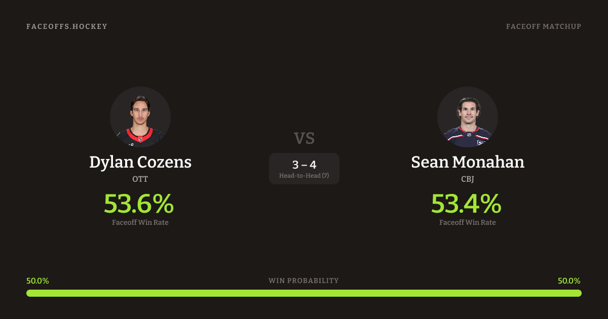 Dylan Cozens vs Sean Monahan — Faceoff Head-to-Head