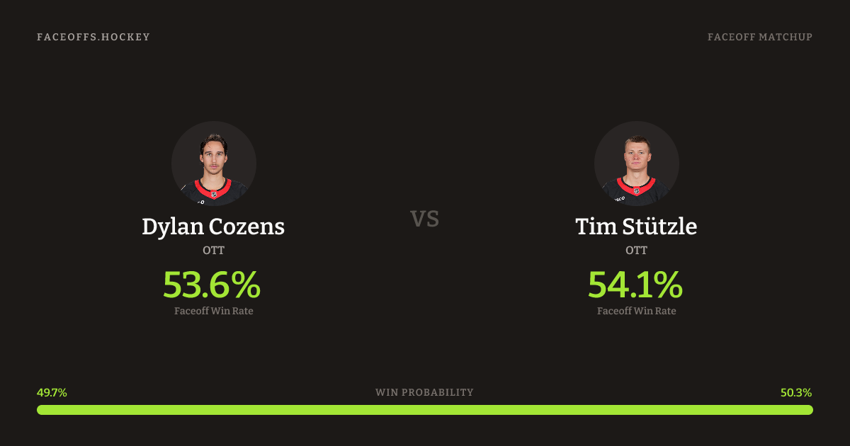 Dylan Cozens vs Tim Stützle — Faceoff Head-to-Head