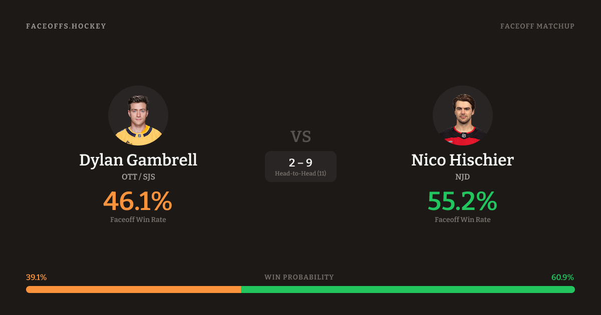 Dylan Gambrell vs Nico Hischier — Faceoff Head-to-Head
