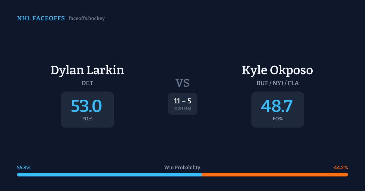 Dylan Larkin vs Kyle Okposo — Faceoff Head-to-Head