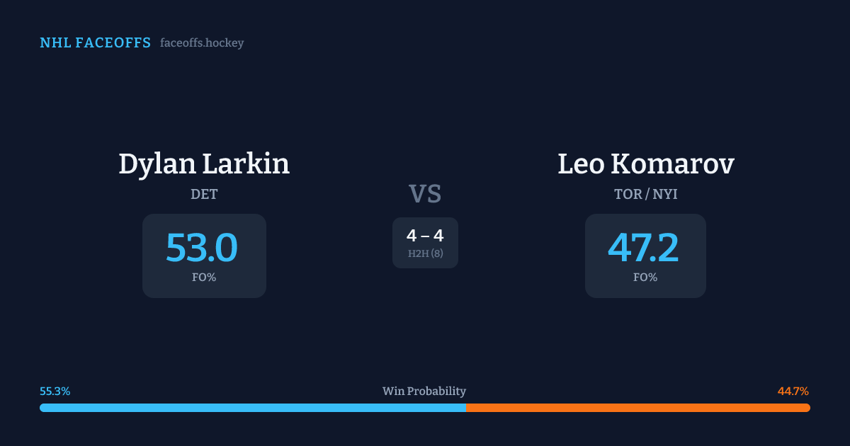 Dylan Larkin vs Leo Komarov — Faceoff Head-to-Head