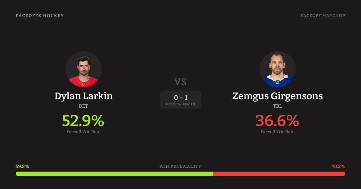 Dylan Larkin vs Zemgus Girgensons — Faceoff Head-to-Head