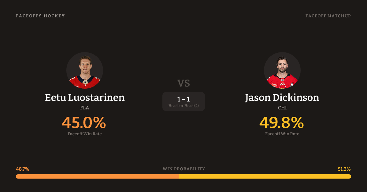 Eetu Luostarinen vs Jason Dickinson — Faceoff Head-to-Head