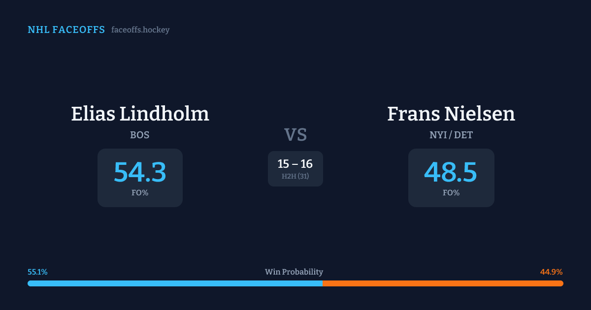 Elias Lindholm vs Frans Nielsen — Faceoff Head-to-Head