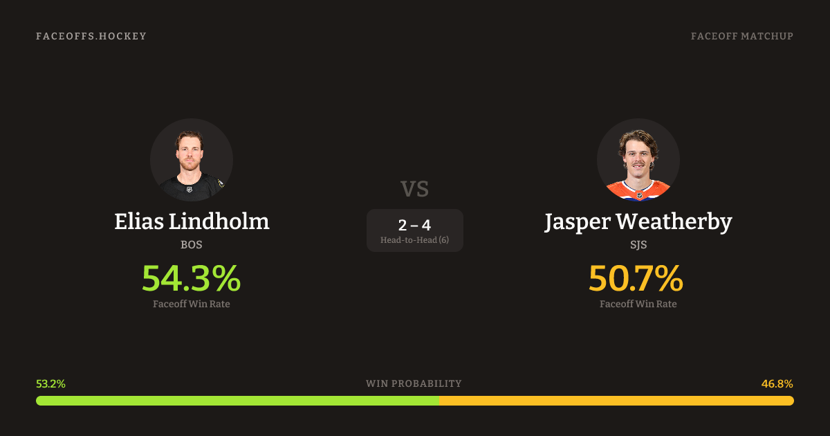 Elias Lindholm vs Jasper Weatherby — Faceoff Head-to-Head