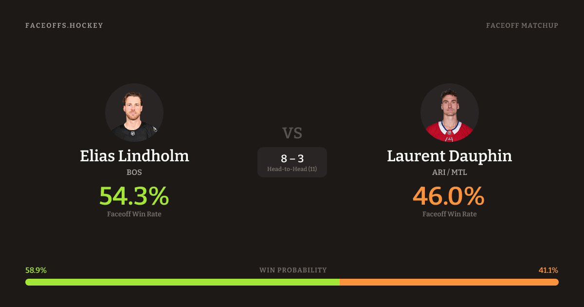 Elias Lindholm vs Laurent Dauphin — Faceoff Head-to-Head