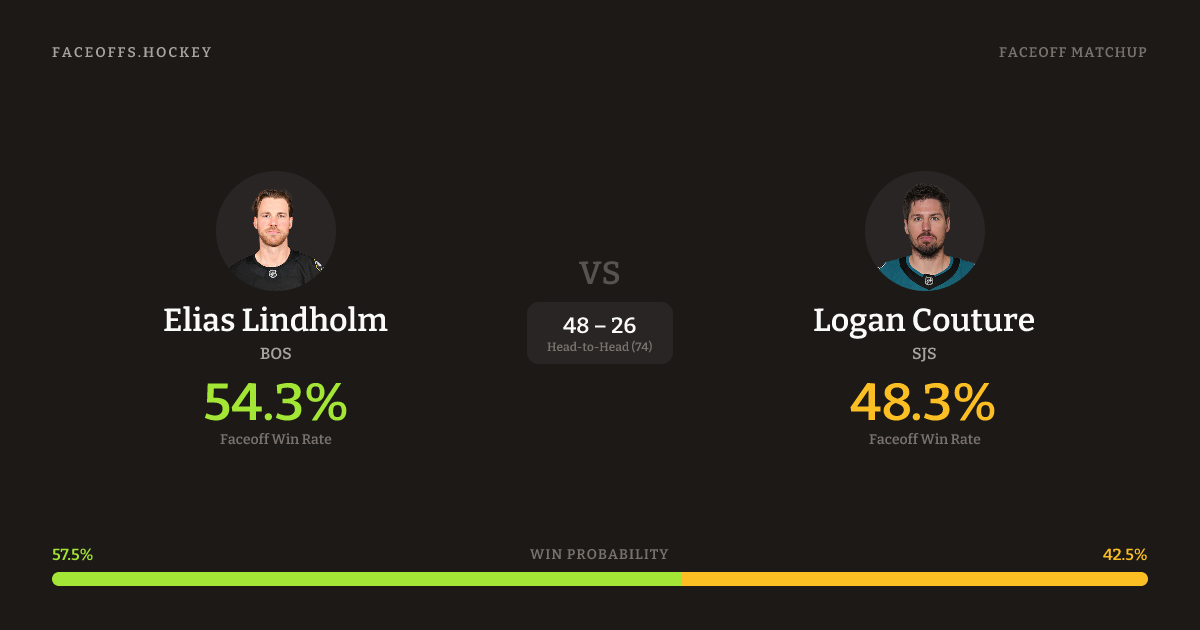 Elias Lindholm vs Logan Couture — Faceoff Head-to-Head