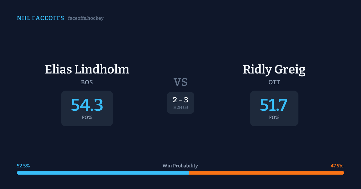 Elias Lindholm vs Ridly Greig — Faceoff Head-to-Head