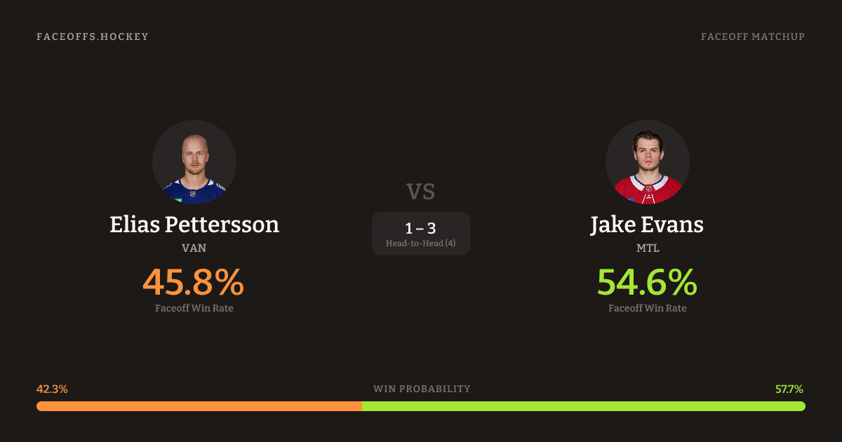 Elias Pettersson vs Jake Evans — Faceoff Head-to-Head
