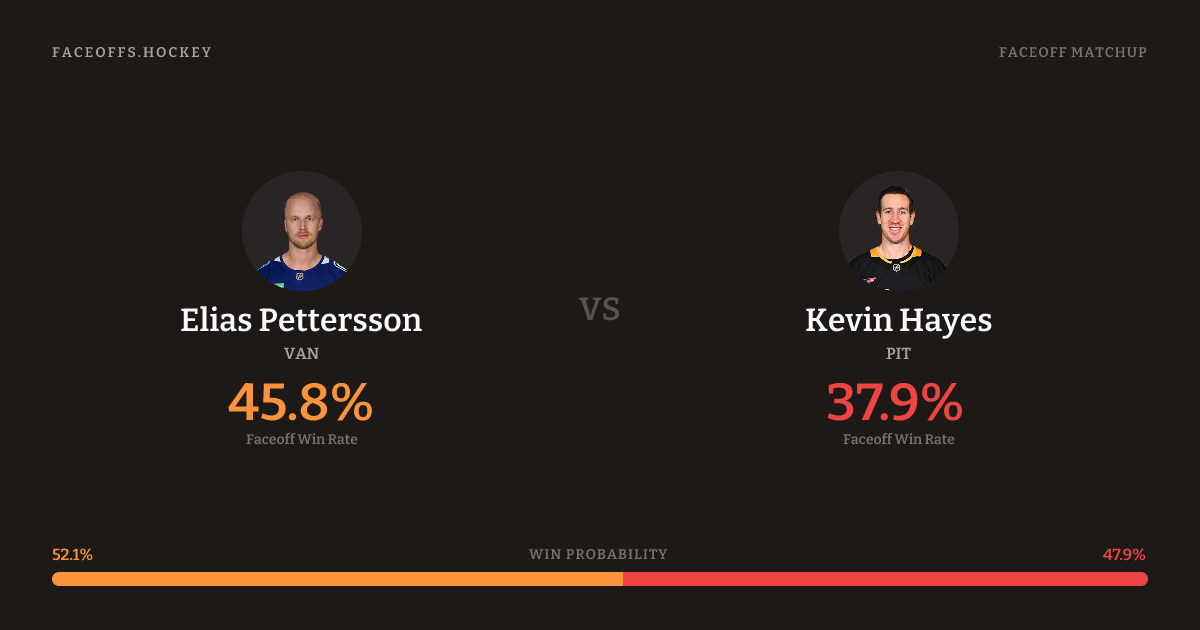 Elias Pettersson vs Kevin Hayes — Faceoff Head-to-Head
