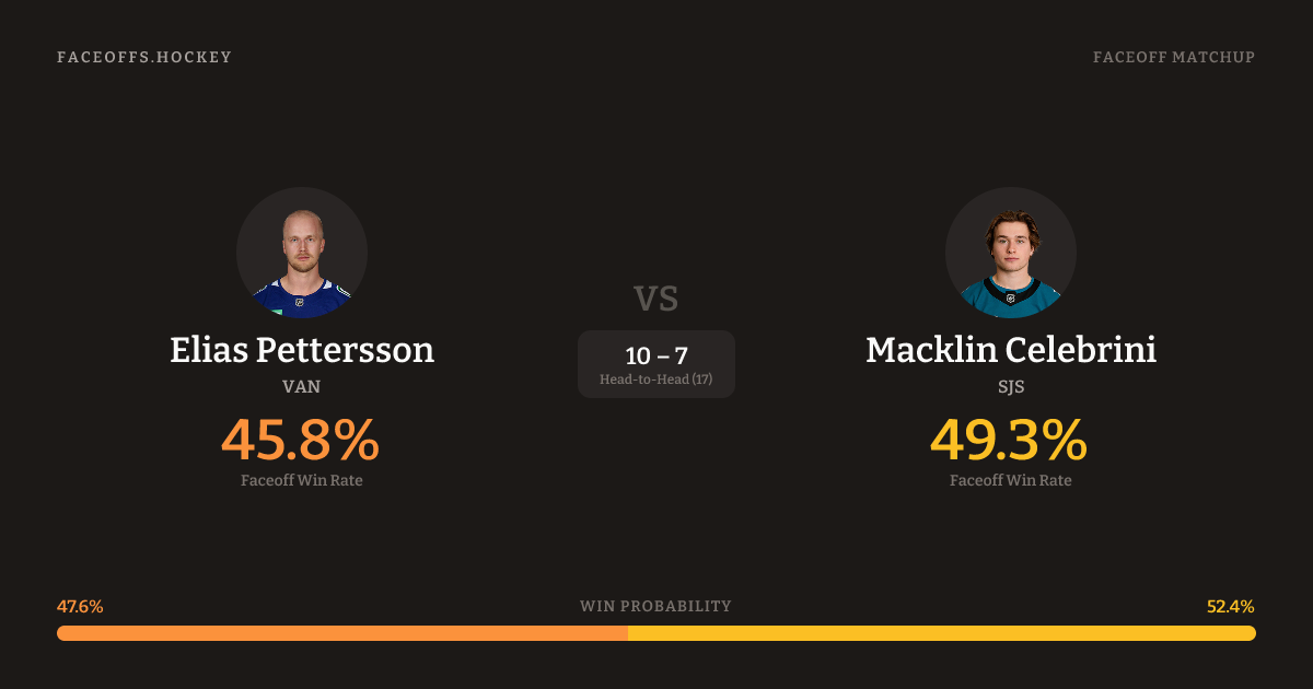 Elias Pettersson vs Macklin Celebrini — Faceoff Head-to-Head