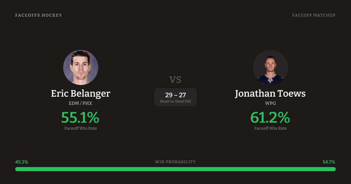 Eric Belanger vs Jonathan Toews — Faceoff Head-to-Head