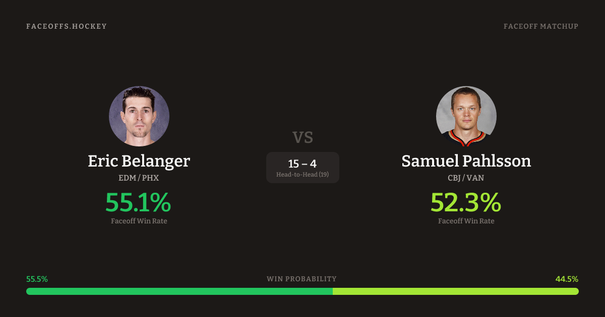 Eric Belanger vs Samuel Pahlsson — Faceoff Head-to-Head
