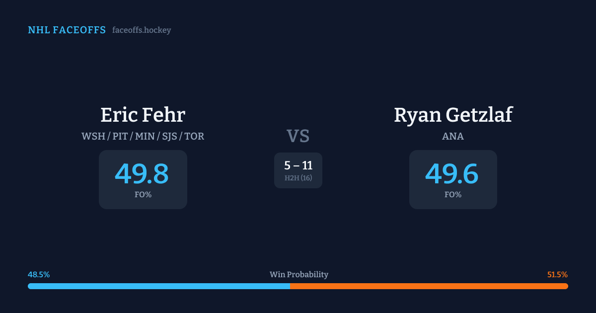 Eric Fehr vs Ryan Getzlaf — Faceoff Head-to-Head