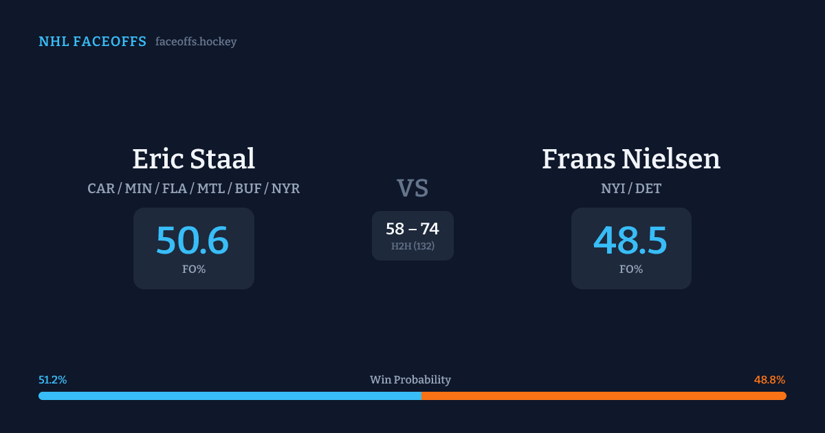 Eric Staal vs Frans Nielsen — Faceoff Head-to-Head