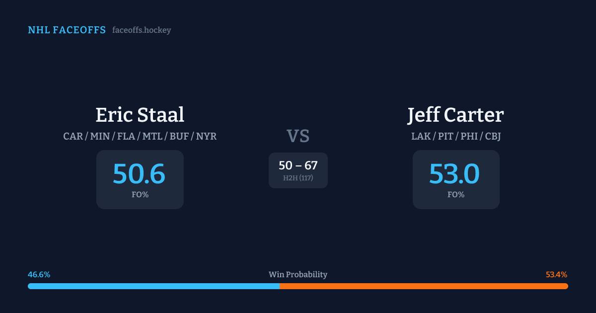 Eric Staal vs Jeff Carter — Faceoff Head-to-Head