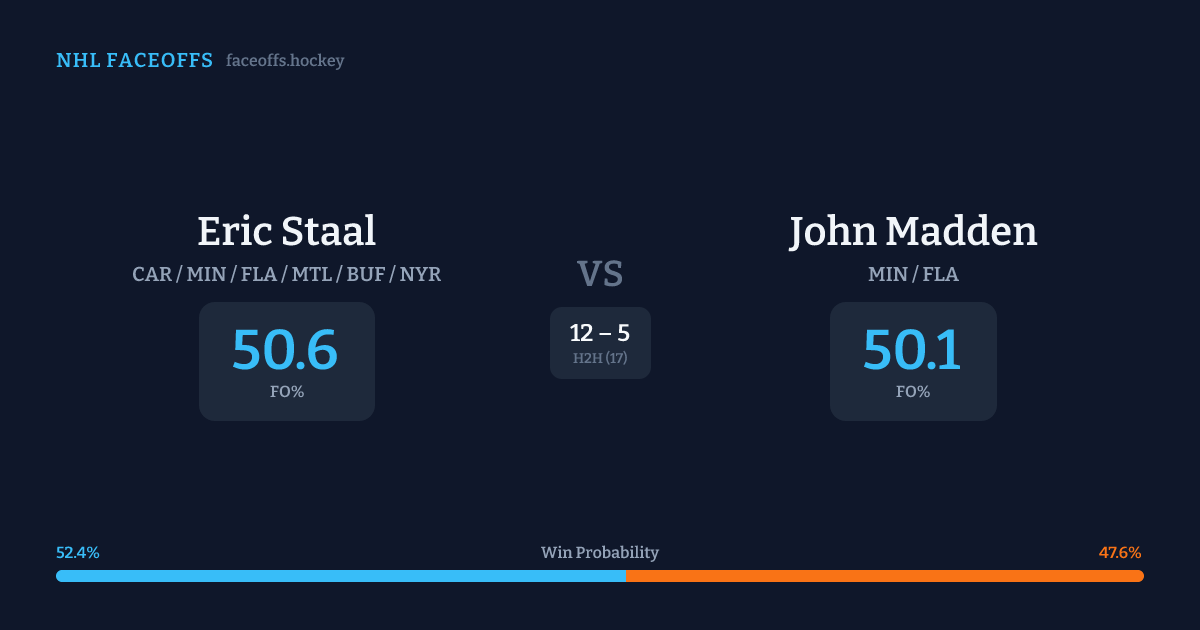 Eric Staal vs John Madden — Faceoff Head-to-Head