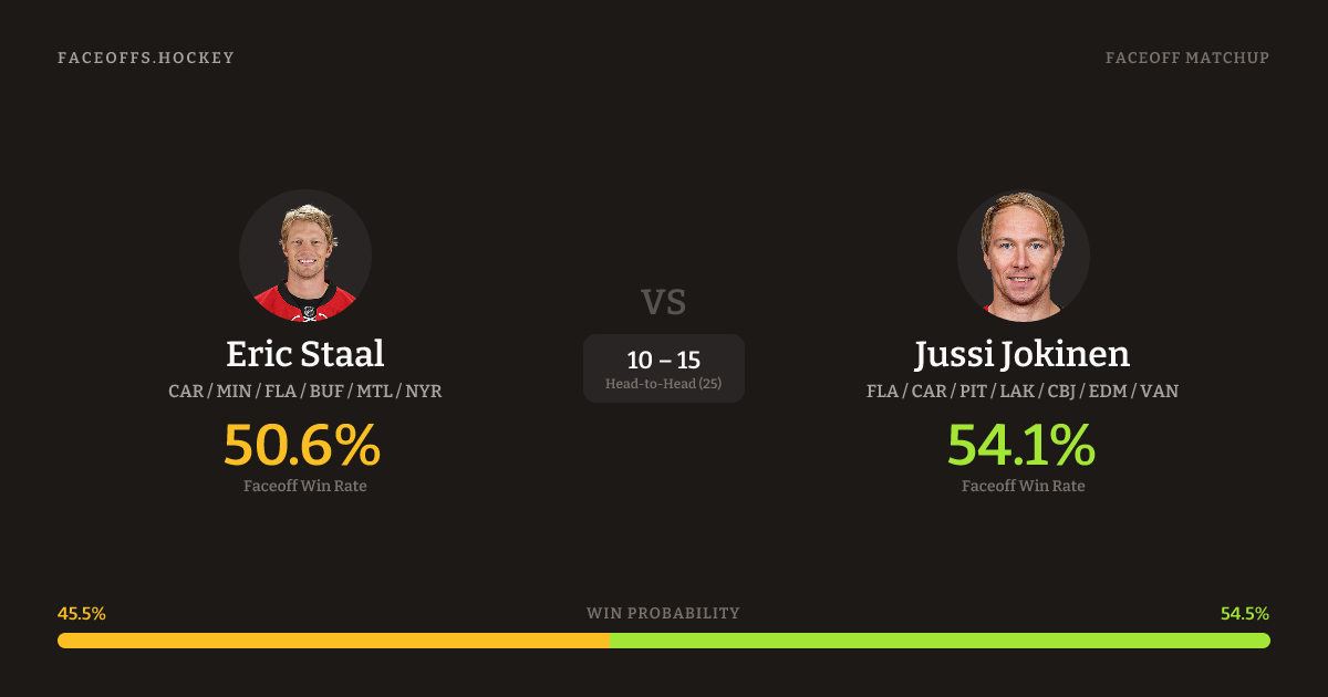 Eric Staal vs Jussi Jokinen — Faceoff Head-to-Head