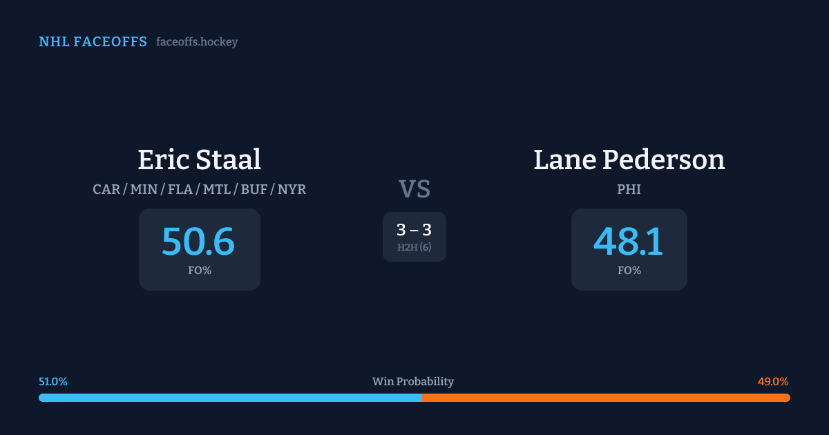 Eric Staal vs Lane Pederson — Faceoff Head-to-Head