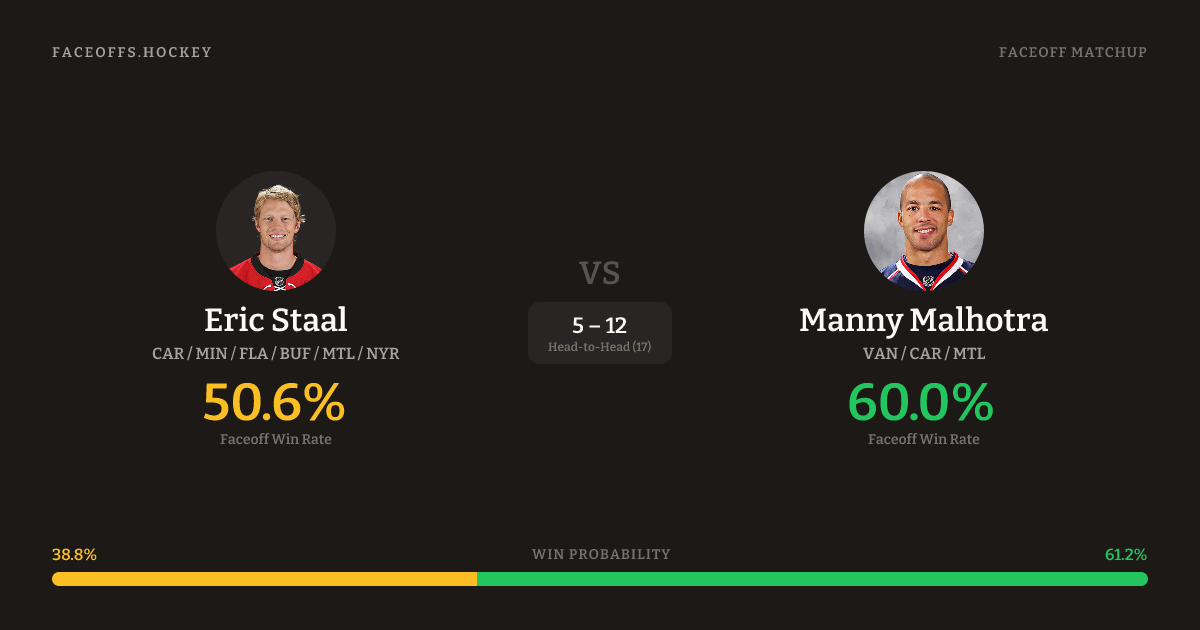 Eric Staal vs Manny Malhotra — Faceoff Head-to-Head