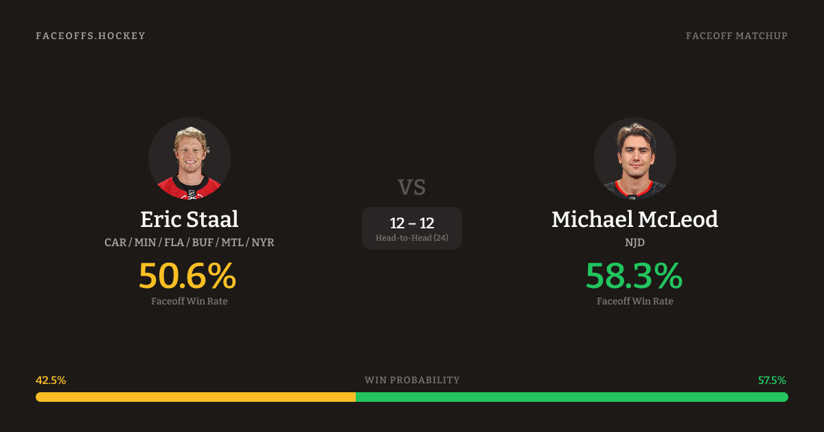 Eric Staal vs Michael McLeod — Faceoff Head-to-Head
