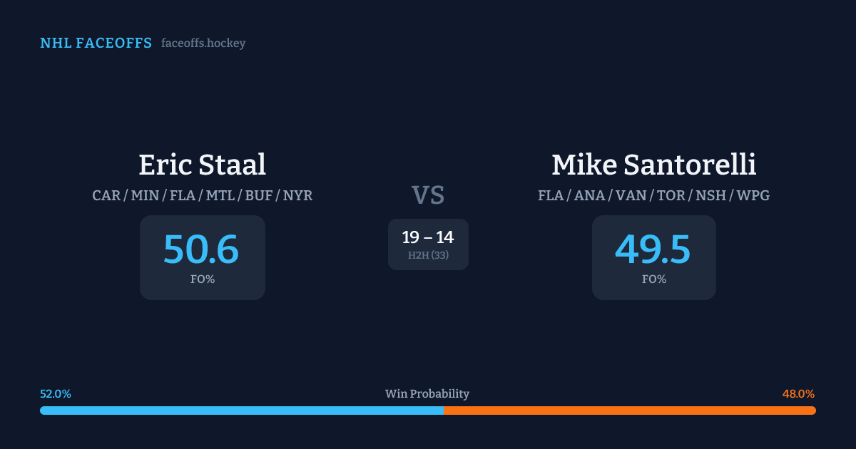 Eric Staal vs Mike Santorelli — Faceoff Head-to-Head