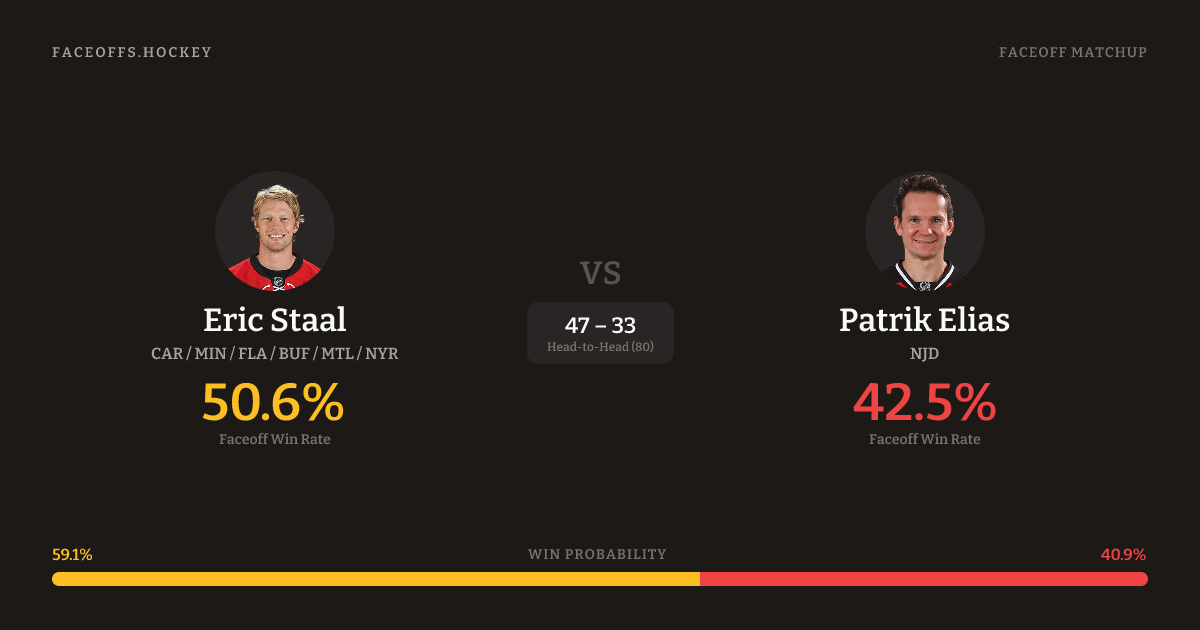 Eric Staal vs Patrik Elias — Faceoff Head-to-Head