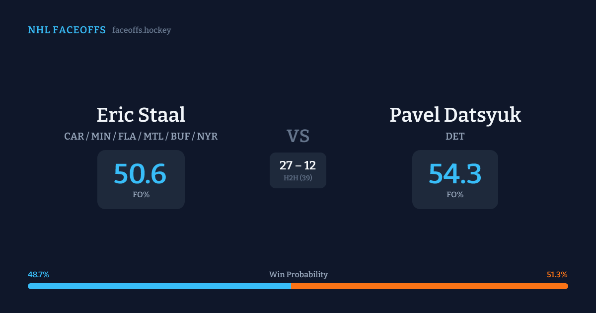 Eric Staal vs Pavel Datsyuk — Faceoff Head-to-Head