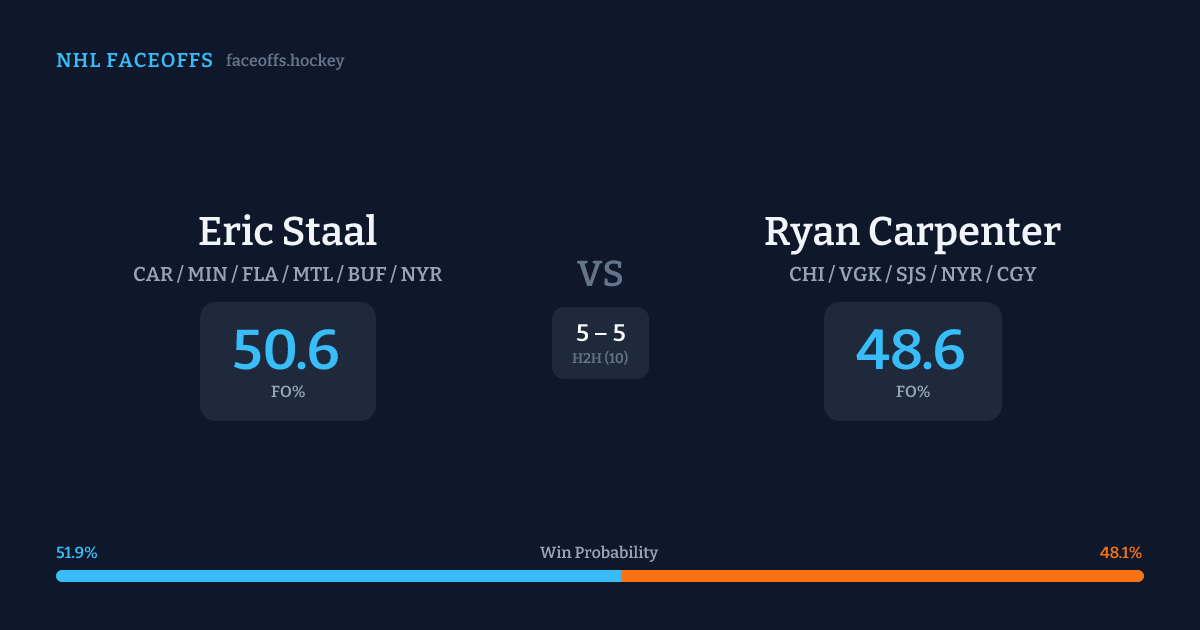Eric Staal vs Ryan Carpenter — Faceoff Head-to-Head
