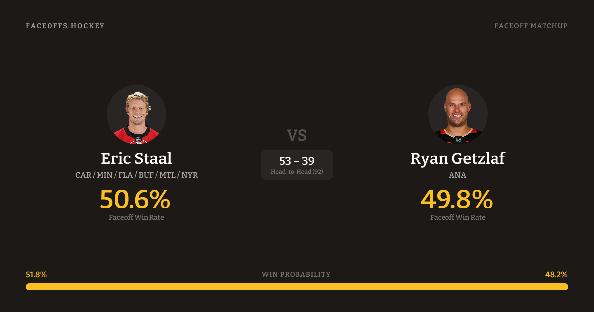 Eric Staal vs Ryan Getzlaf — Faceoff Head-to-Head