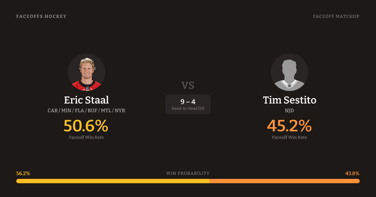 Eric Staal vs Tim Sestito — Faceoff Head-to-Head