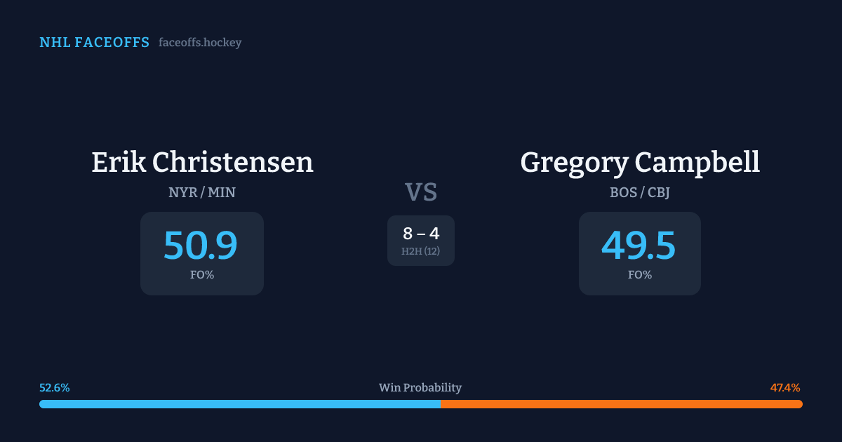 Erik Christensen vs Gregory Campbell — Faceoff Head-to-Head