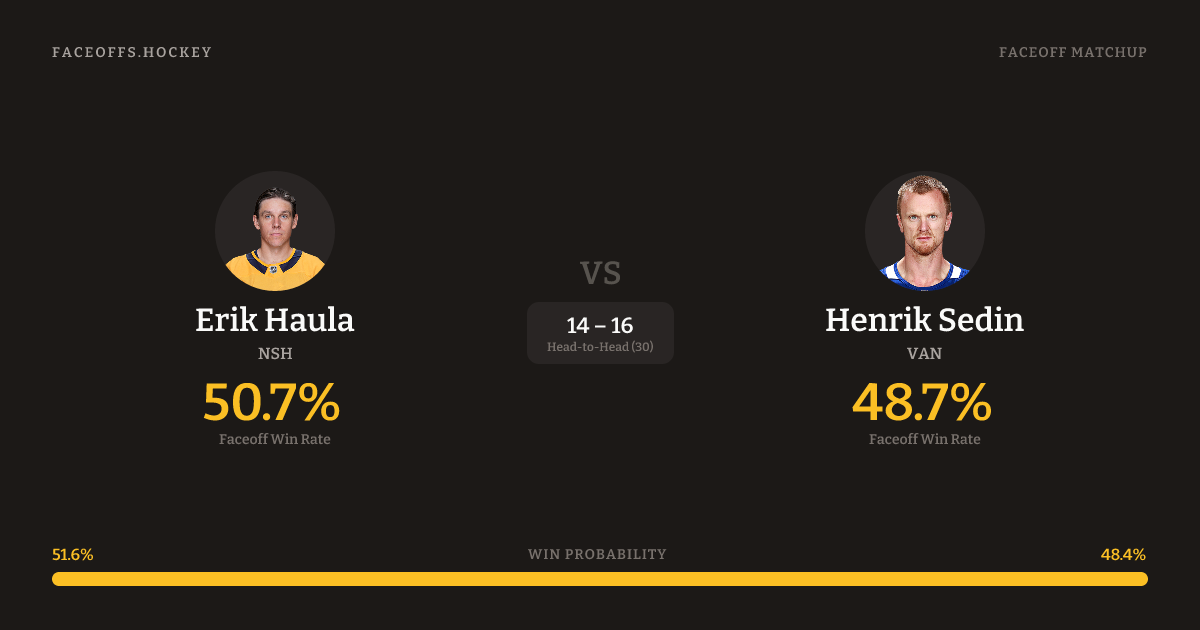 Erik Haula vs Henrik Sedin — Faceoff Head-to-Head