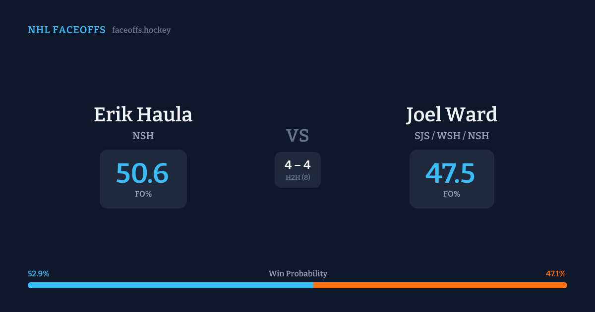 Erik Haula vs Joel Ward — Faceoff Head-to-Head