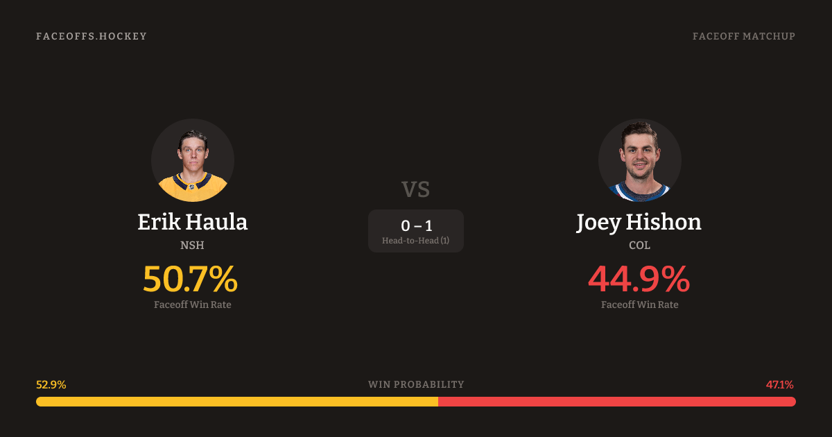 Erik Haula vs Joey Hishon — Faceoff Head-to-Head