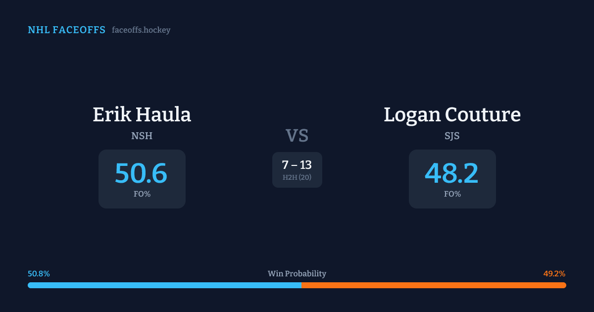 Erik Haula vs Logan Couture — Faceoff Head-to-Head