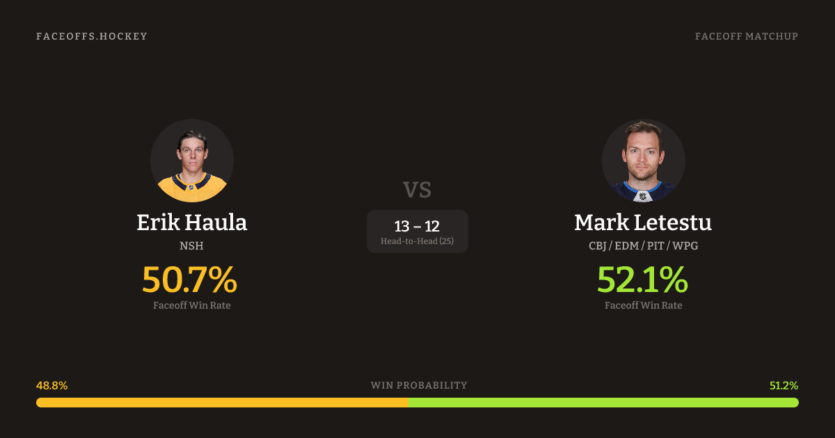 Erik Haula vs Mark Letestu — Faceoff Head-to-Head