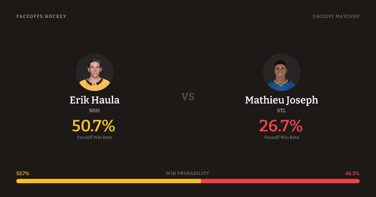 Erik Haula vs Mathieu Joseph — Faceoff Head-to-Head