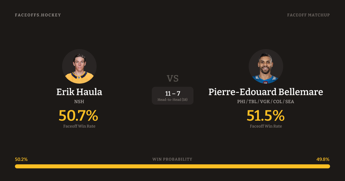 Erik Haula vs Pierre-Edouard Bellemare — Faceoff Head-to-Head