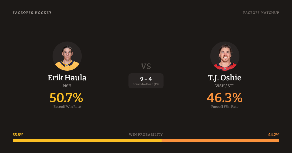 Erik Haula vs T.J. Oshie — Faceoff Head-to-Head