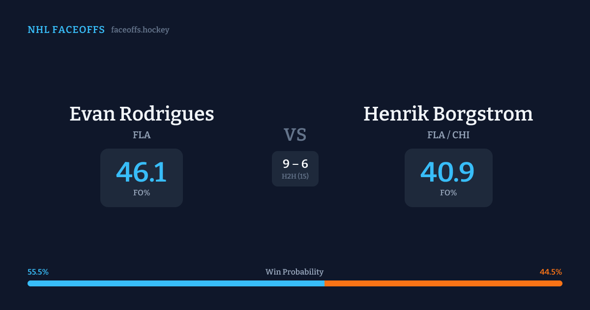 Evan Rodrigues vs Henrik Borgstrom — Faceoff Head-to-Head