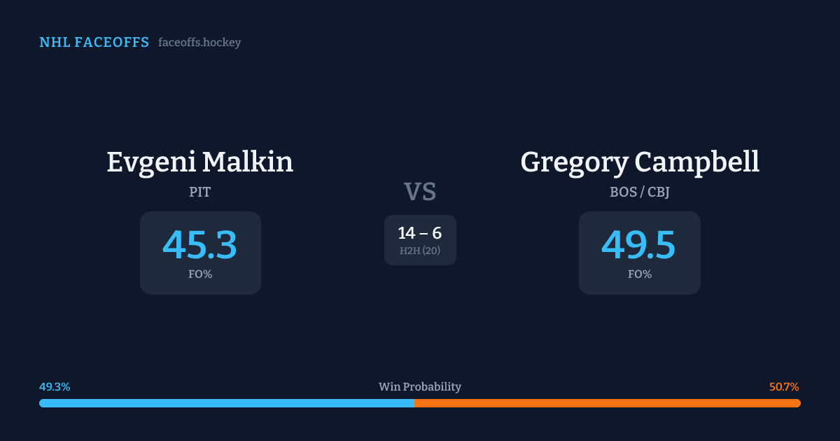 Evgeni Malkin vs Gregory Campbell — Faceoff Head-to-Head
